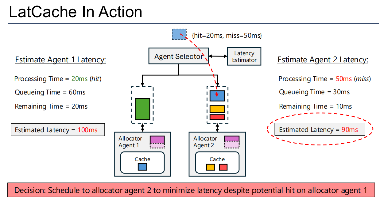一旦完成了对每个 AA 上请求延迟的估计,LatCache 就会将该请求分配给具有最低预计延迟的 AA;