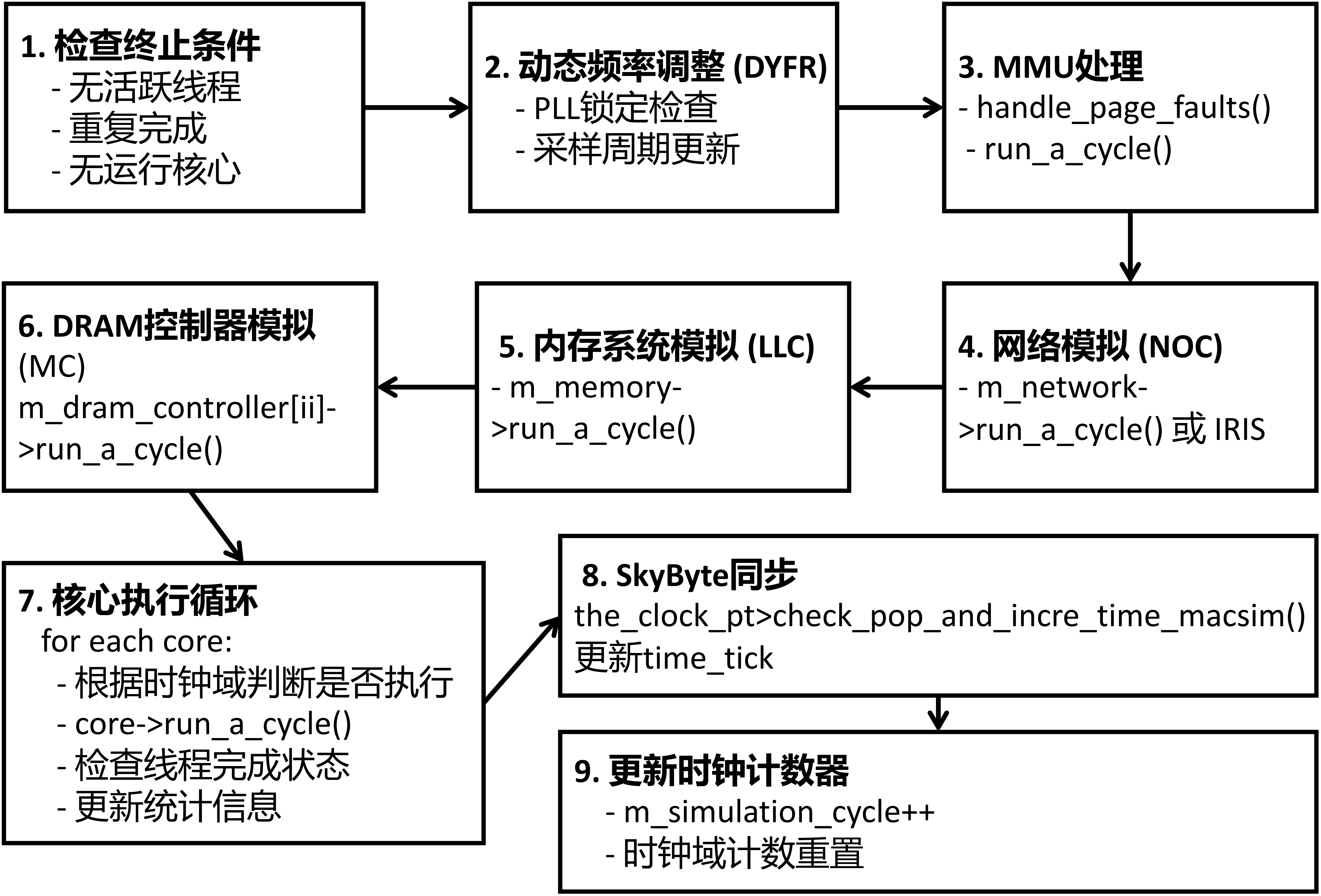 // 4. 主模拟循环while (sim->run_a_cycle()) ;